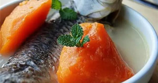 鯽魚2條、木瓜半個、薑片、鹽、蔥適量