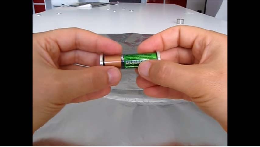 大家以前在學校的時候可能學過所謂的「單極馬達」(homopolar motors) ,利用電流產生磁場,進而製造吸引力或排斥力。但不懂原理也沒關係,能玩就好!步驟很簡單,在桌上鋪錫箔紙,然後把磁鐵貼在電池兩端。