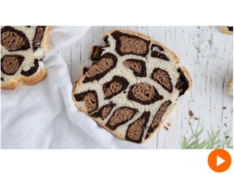 豹紋面包今年很流行,但是這款看起來很酷的面包,讓大家很迷惑,它是怎麼做的呢?難道我一定要去買那麼貴的才能品嚐嗎?其實不然,這裡公開它的配料和作法,這個假期,或許你可以抽時間給家人做一個。切成片單獨包裝,還可以做禮物呢! 豹紋面包好看又好吃,做起來不難,現在就一起來看看吧!文章最底下有視頻。  另一位葡萄牙面包師的作品。 第一部分:和面 1、將375克普通面粉、35克糖、1茶匙活性乾酵母、½茶匙鹽、250毫升牛奶和成面糰;和好後,加入20克室溫黃油,將面和到拉出一個孔,小孔不會自己變形為止。 2、取其中320克白面糰,放在旁邊發1個小時。 3、剩下面糰,加入15克可可粉和10毫升牛奶,和好後,取其中的205克,放在旁邊發1個小時。
