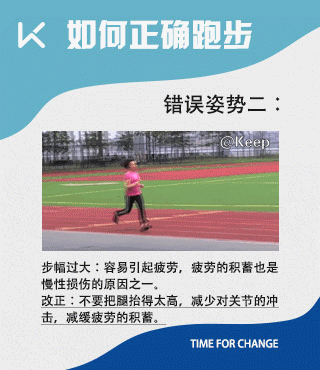 這樣跑步的時間持續不長,更重要的是並沒有消耗什麼脂肪。人體的能量係統有無氧的磷酸原和糖酵解,有氧的糖和脂肪的有氧氧化兩大類。快速跑氧供應不足,機體只能進行無氧供能,因而脂肪是無法參與供能的,所以只有低強度的運動才能有有氧運動,脂肪才能被動員作為能量供應而被消耗。如何判斷有氧或無氧運動 當你在跑步時感覺心跳加快,上氣不接下氣,這是已經出現了明顯的無氧狀況;當您跑步時感覺步伐呼吸均勻協調,並且還可以同旁人聊天而不感覺步伐呼吸變亂,這就是最佳的有氧長跑。 誤區五:跑步姿勢很隨意 正確的跑步姿勢是獲得最佳跑步減肥的條件,也是預防損傷的前提。跳躍跑、前傾跑都不對。正確的跑步姿勢應該是:抬腿跨步、腳掌落地、腳跟觸地滑行等。應注意身體保持直立不應前傾,也不應該用跳躍的方式跑步。