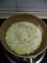 用料 芹菜葉蛋餅的做法 芹菜葉洗凈,瀝水後切碎備用 雞蛋磕開入碗中,加入菜菜碎,面粉攪拌幾下,並加入胡椒粉、鹽、適量的水、攪拌成糊 平底鍋倒少許油,加熱後,倒入糊,一面煎至微微發黃後,繼續煎另外一面