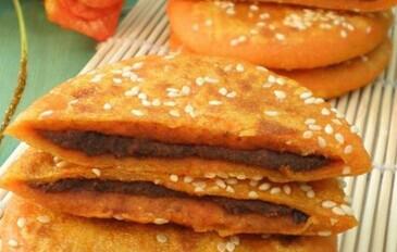 奶香愛心玉米煎餅  玉米粉150克,牛奶150毫升,白糖,一個心形的模具 做法: 1.將玉米粉與適量白糖放入大碗中,倒入牛奶拌勻;將心形模具洗凈擦乾待用 2.開小火;平底鍋內放油,放入模具,用勺子舀適量的面糊倒入模具中 3.等玉米餅煎至成形後小心地取下模具,最後將玉米餅煎至兩面金黃熟透即可. 芝麻醬千層餅  面粉150克,芝麻醬,芝麻油 做法: 1.面粉中加入適量的溫水揉成光滑的面糰,蓋上保鮮膜餳二十分鐘 2.芝麻醬中加入少許鹽與芝麻油調開 3.將餳好的面糰擀成約0.2厘米厚的長方形薄片 4.用小刷子在面皮上薄薄地刷上一層調好的芝麻醬 5.將刷好芝麻醬的面皮對摺,將邊緣用手按緊 6.將折好的面皮再用擀面杖擀開 7.將4至6步驟重複一次 8.再在擀開的面皮上刷上芝麻醬,將面皮的三分之一折起 9.最後將面皮分三次折好,再用擀面杖將折好的面皮稍稍擀開一些 10.再用刀將其切成5份 11.平底鍋內放油,下入千層餅,小火將其煎黃一面之後翻面,最後煎至兩面金黃中間熟透即可. 蔥油餅  面粉150克,蔥花,雞粉,鹽,芝麻 做法: 1.面粉中加入適量的鹽與雞粉拌勻,再加入適量的溫水揉成面糰,蓋上保鮮膜餳20分鐘;蔥洗凈,切成蔥花 2.餳好的面糰揉搓成條,再分成4個小劑子 3.將小劑子擀成約0.3厘米的薄片,再刷上一層油,撒上蔥花 4.再將面皮順長邊捲起,揉搓成細長條 5.將長條的兩頭向中間捲起,形成兩個面卷 6.將兩個面卷重疊在一起,用手稍稍按扁一些 7.再用擀面杖將其擀成約0.5厘米厚的圓餅 8.再將圓餅的兩面都沾上芝麻 9.平底鍋內放油,下入蔥花餅,小火將其煎黃一面後翻面,最後煎至兩黃金黃熟透即可. 口袋餅  面粉200克 做法: 1.面粉中加入適量的溫水,充分地揉成光滑的面糰,蓋上保鮮膜餳20分鐘 2.餳好的面糰揉搓成條,再分成約50克重的小劑子 3.將小劑子用手按扁,再用擀面杖擀成約0.2厘米厚的面皮 4.取一張擀好的面皮,用小刷子在面皮的中間刷上油,邊緣刷上水,再用另一張面皮將其蓋起來,邊緣按緊,口袋餅生坯就做好了;用同樣的方法將剩下的面皮做完 5.平底鍋內放油,下入口袋餅生坯,小火將其煎黃一面後翻面,最後煎至兩面金黃中間鼓起時取出,從中間切開成兩個口袋餅,裝上炒好的餡料即可. 南瓜雞蛋煎餅  南瓜350克,面粉100克,糯米粉50克,雞蛋2個,水約150亳升,生薑,蔥 做法: 1.南瓜去皮和瓤後洗凈切成末,蔥切成花,生薑切成末;雞蛋打散成蛋液 2.將南瓜末、薑末、蔥花放入大碗中,倒入面粉與糯米粉,加入少許的鹽,倒入雞蛋液,加入約150毫升水,充分地拌勻成面糊; 3.平底鍋內放油,將一半面糊倒入鍋中,蓋上鍋蓋,小火將其煎至定型後翻面,最後煎至兩面金黃中間熟透時出鍋切塊裝盤,剩下的一半面糊按同樣的方法煎熟即可。 包菜蝦皮餅  面粉200克,包菜250克,蝦皮適量,料酒,生薑,大蒜,蔥,雞精 做法: 1.包菜洗凈切碎,加入適量的鹽拌勻醃製10分鐘後擠去包菜內多餘的水分;蝦皮洗凈瀝幹水分;薑蒜切末,蔥切花 2.熱鍋放油,下入蝦皮,用小火將其炒至微黃後加入兩小勺料酒炒勻,舀出待用 3.將炒好的蝦皮、薑蒜末、蔥花一起放入醃製好的包菜中,再加入適量的雞精、芝麻油拌勻待用。 香甜玉米餅  糯米粉150克,玉米粉50克,嫩玉米1個,白糖 做法: 1.先將嫩玉米煮熟,放涼後剝成粒 2.將糯米粉、玉米粉、熟玉米粒、白糖一起放入大容器中; 3.加入適量溫水,揉成面糰; 4.將面糰搓成長條再分成小劑子,將小劑子揉圓後再用手按扁,製成玉米餅生坯; 5.平底鍋內放油,放入玉米餅生坯,小火煎至兩面金黃即可出鍋。 京東肉餅  面粉300克,牛肉250克,大蔥50克,雞蛋一個,胡椒粉,生薑,生抽,澱粉,料酒,芝麻油 做法: 1.牛肉洗凈剁成肉末,大蔥切碎,薑切碎成末; 2.牛肉末中加入少許澱粉抓勻,再加入一勺食用油、適量的鹽、胡椒粉、生抽、料酒、芝麻油、打入一個雞蛋,朝一個方向攪拌上勁: 3.加入大蔥末與薑末,繼續朝一個方向拌勻後蓋上保鮮膜醃製30分鐘; 面皮及肉餅製作: 1.面粉中加入適量的溫水,揉成表面光滑的面糰,蓋上保鮮膜醒20分鐘 2.將醒好的面糰揉搓成長條,再分成四個小劑子 3.將小劑子揉圓,用手按扁,再擀成大薄片 4.從面皮的圓心位置下刀,切至面皮的邊緣,將面皮的一半切開 5.將面皮的四分之三均勻地塗上醃製好的肉餡,注意面皮的邊緣不要塗 6.將沒有塗肉餡的面皮向上疊起,再向右疊,最後將下面剩下的部份向上疊起,用手將邊緣按緊 7.平底鍋內放油,放入疊好的肉餅,蓋上鍋蓋,小火將其煎至兩面金黃中間熟透時即可 胡蘿蔔豆沙煎餅  胡蘿蔔250克,面粉120克,玉米粉50克,糯米粉50克,紅豆沙、熟白芝麻 做法: 1.胡蘿蔔洗凈去皮蒸熟,取出放入盆中用擀面杖搗碎成泥 2.將面粉、玉米粉、糯米粉放入胡蘿蔔泥中,揉成光滑的面糰,餳20分鐘; 3.餳好的面糰揉搓成長條,分成約30克重的小劑子 4.將小劑子按扁,用手捏成邊緣薄中間厚的面皮 5.放入適量的豆沙餡,用虎口將面皮慢慢地捏攏 6.收口朝下放在案板上用手按扁成小圓餅 7.在案板上均勻地撒上一層熟芝麻,將小圓餅放在芝麻上輕輕地按壓,使之兩面都沾上芝麻 8.平底鍋內放油,下入胡蘿蔔豆沙餅,小火將其煎黃一面後翻面,最後煎至兩面金黃熟透即可 椒鹽油酥餅  面粉200克,椒鹽,油 做法: 1.取150克面粉,加入適量的溫水,揉成光滑的面糰,蓋上保鮮膜餳20分鐘 2.將剩下的50克面粉中加入適量的椒鹽拌勻 3.將適量的油燒熱,倒入拌有椒鹽的面粉中攪拌均勻即成椒鹽油酥 4.