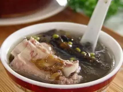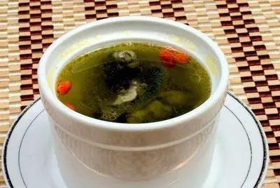 做法: (1)鯉魚去鱗、鰓、鰭、內臟清洗乾淨,加少許油在鍋中,略煎至金黃色。 (2)將黑豆去瓤粒並清洗乾淨,放入鍋中?A不必放油,炒至豆衣裂,再用清水洗乾淨,備用。 (3)紅棗去核,生薑去皮,陳皮洗乾淨,備用。 (4)水煮滾,先放入黑豆、紅棗、陳皮、生薑大火煮十分鐘,再轉至文火煮一個半小時,最後放入鯉魚,煮三十分鐘後加入胡椒鹽粉即可。 功效:滋陰補血、益肝腎、明目安神、健脾補氣、利尿消腫 3、紫菜排骨清腸湯 針對:視力退化、貧血的人