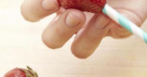 這招相當適合在派對餐點上使用!將可愛的吸管像串烤肉一樣穿過草莓,草莓蒂頭就會輕鬆彈出。