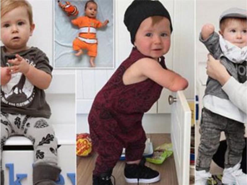 據外媒報道,英國一名14個月大的“獨臂寶寶”奧克利•林奇近日收穫了大批粉絲。他的右小臂先天發育不全,但小傢夥時尚可愛的照片被父母上傳到社交網絡上後,迅速走紅。