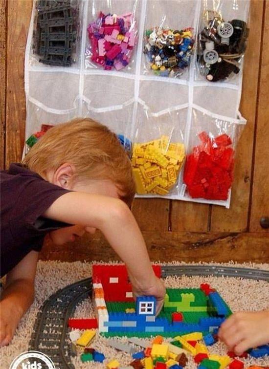 使用鞋子儲存袋來儲存樂高積木,便於整理