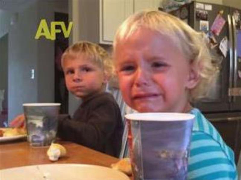 但是這種大哭對於其他人來說真的是一種煎熬。下面這個小女孩在吃飯時不知為什麼哭了起來,一旁的哥哥竟然說出了這樣的話。