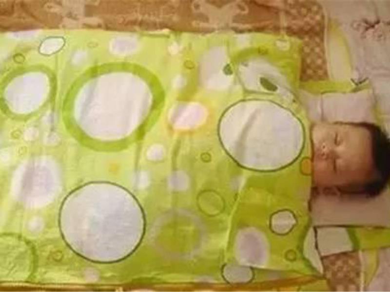 1、將薄棉被折起,能蓋到嬰兒的全身,稍長、稍寬鬆的狀態。