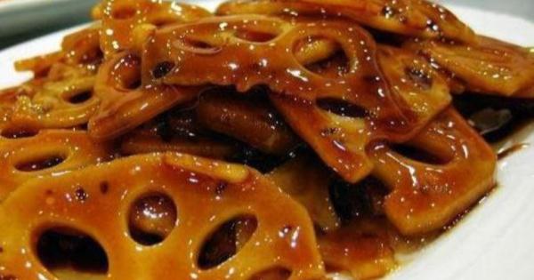 食材:500g蓮藕、適量沙拉油、10g幹辣椒、10g韓國糖稀、100g白糖、20ml醬油