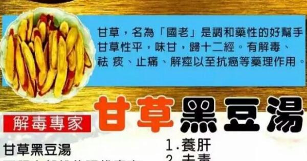 甘草性平,味甘,歸十二經。有解毒、祛 痰、止痛、解痙以至抗癌等藥理作用。
