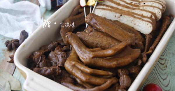 材料:鴨爪350克、鴨翅500克、鴿腎300克、點鹵豆腐(或普寧豆腐)2塊