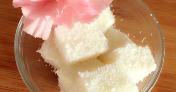 8. 盤子裡面放入椰蓉,小塊奶方沾滿椰蓉