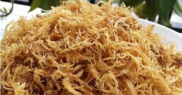 5. 不停翻炒約30分鐘,肉絲越來越幹並蓬鬆,顏色金黃即可。