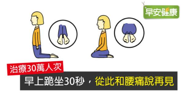 腰痛不一定是腰的問題!日本柔道復健師、東京聖和整骨院院長金聖一,開業20年、治療30萬人次後,在其著作《「朝30秒の正座」で腰痛が治る》(暫譯:早上30秒跪坐治腰痛)中發表了驚人的事實:腰痛通常是因為「脊椎不正」、「用腳方式」、「血液循環不良」等三大原因,然而只要每天早上跪坐30秒,1個月左右腰痛就會明顯改善。