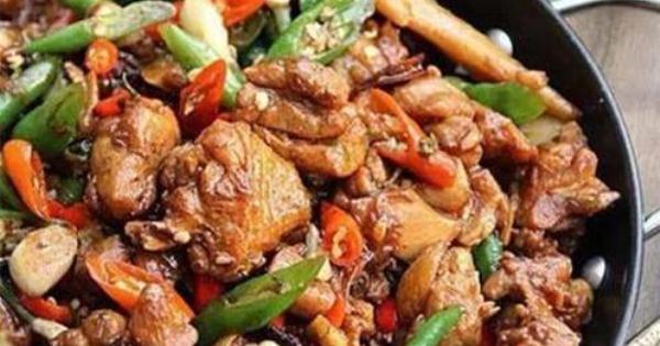 9.炒好的雞塊倒入;