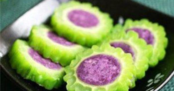 原料:紫薯、苦瓜1根、蜂蜜適量