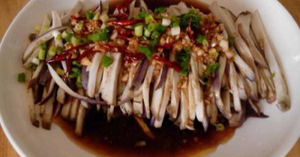 食材:茄子 調味料:鹽'雞精,油,蔥,辣椒,糖,醋,大蒜 工藝:蒸 工具:蒸鍋 食材處理,:茄子切絲蒸 口味:鮮香