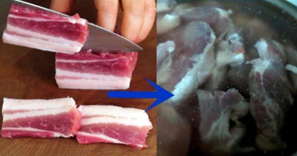 那麼豬肉的腥味究竟要如何去除呢?找一口大鍋,裝滿冷水,將生的豬肉略衝洗後放入,置於爐上。將火開到最小最小,然後等半個鍾頭(時間視鍋的大小而定,原則是火要小,水不能冒泡)。