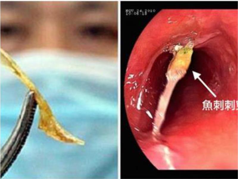 武漢有一名女子卡了魚刺之後,吞下兩口飯糰。2天後她開始後口疼痛,發燒甚至休克。送往醫院後,發現她的食道裡有一個長約2公分的魚刺異物,將周圍的食道刺得血肉模糊,因為出血實在太嚴重,所以最後女子竟然被醫生宣告不治。