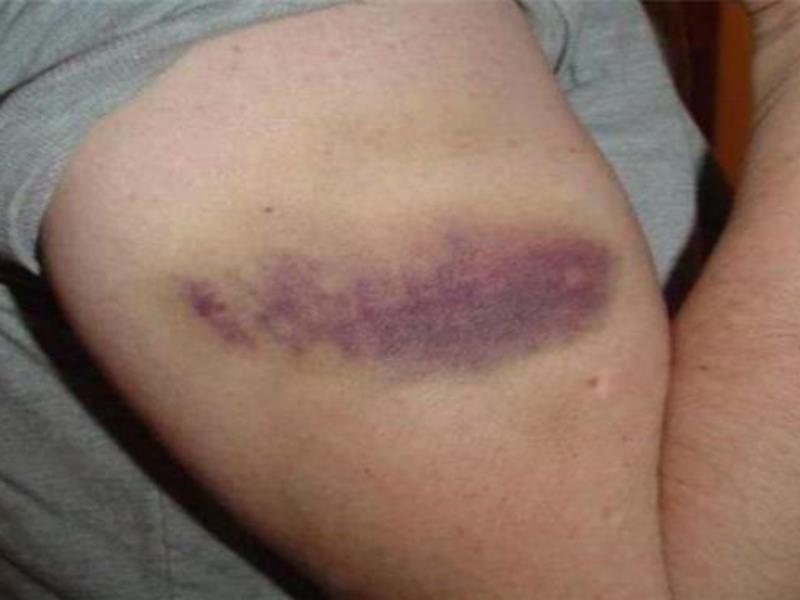 如果你碰傷的血管是在肌膚的更裡層,瘀青甚至會跳過紅色的階段,讓你在皮膚上跑出藍紫色的痕跡。