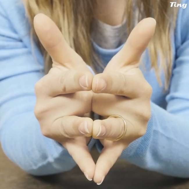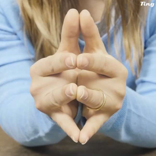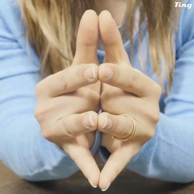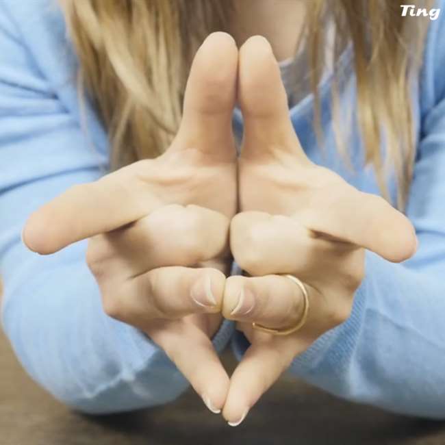 第二個步驟、把你的中指向內凹,一樣合在一起。