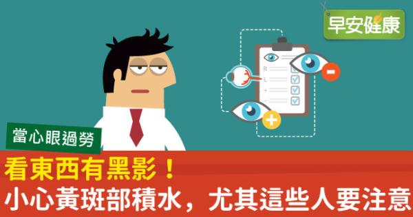 這種疾病最大症狀是中心暗影,也就是病患中心視野變暗,病人覺得有黑影遮住,如果合併水腫、積水,就會有物體變小或物體變形,這與黃斑部病變或飛蚊症有什麼不同呢?黃斑部病變是指中心視野缺損,也就是中心位置「看不到」,也就是說,中心視野暗影與中心視野缺損是不同的,中心視野暗影是指看東西模糊變暗,「感覺有一塊黑影遮住」,而黃斑部病變視野缺損是指中心位置「看不到」,那飛蚊症呢?飛蚊症是指「看到一個黑影」,這個黑影還會移動。