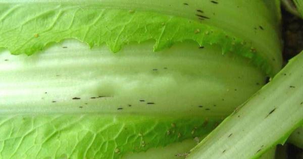 第二種情況:綠葉和白幫上都有黑點,而且洗不掉。這是在栽培過程中,使用氮肥過量造成的。