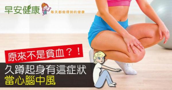 雖然多數人在久蹲起身時會眼前一片黑暗,多半是因為腦部瞬間缺血、缺氧,但是長野文昭也特別提醒,少數人也有可能因為腦腫瘤、腦梗塞、腦血栓等腦部疾病,或是動脈硬化造成腦供血不足等原因,而出現相同症狀。