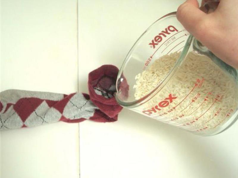 ▲ 你只需要將大米倒入襪子內,一定要確保它沒有洩漏出來。如果你希望有一些特殊的香味你也可以將薰衣草或者乾的茉莉花放在裡面。