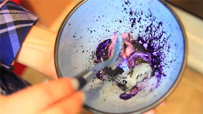 1.把兩顆口香糖放在碗中,加上一匙的食用色素,顏色可以自由搭配,用量就依據想要的顏色深度酌量添加。