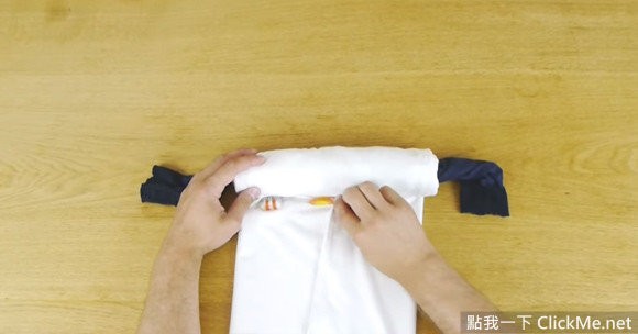 以兩天一夜最低限度的物品來做示範,上衣1件、內褲1件、襪子1雙、牙刷1支。