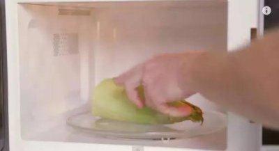 先將玉米的尾端切去一小節在微波加熱3-5分鐘就可以輕鬆去除玉米皮嚕!