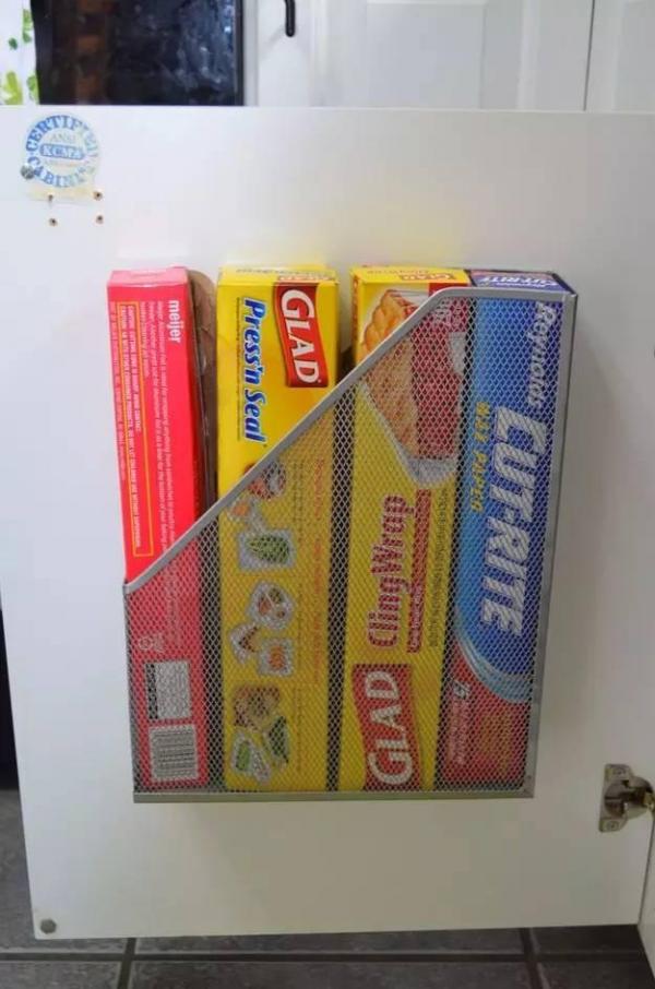 廚房紙巾架和文件夾盒都可以用來收納腰帶和手包。