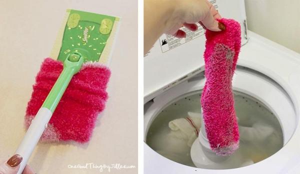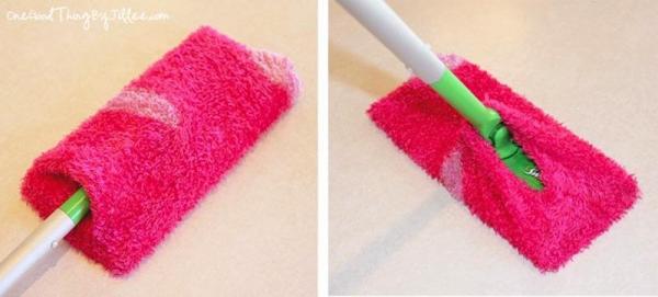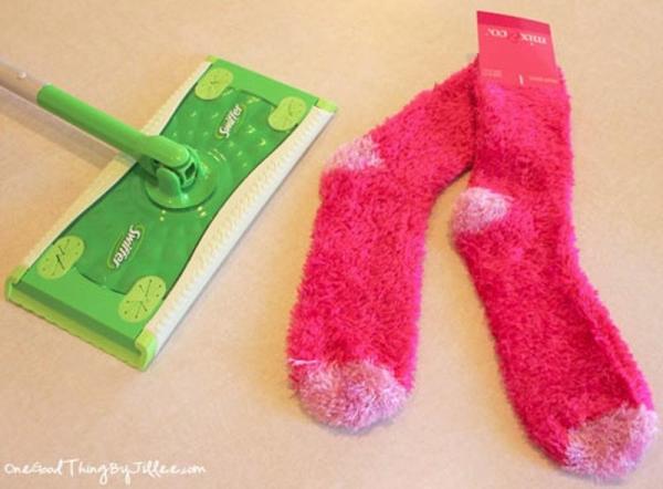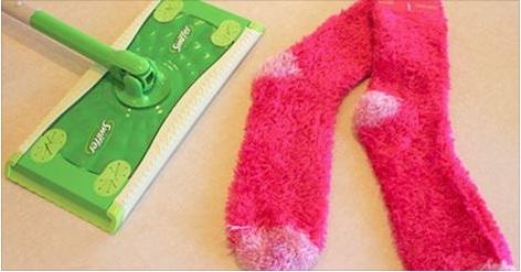 她把一雙舊襪子剪開然後套在了速易潔拖把上,我一開始覺得莫名其妙,但是看到它的神奇清潔力我頓時都明白了。