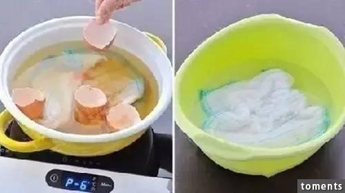 把抹布放入盛有清水的鍋中,接著將生蛋殼放入,大火煮開,開蓋持續煮6分鐘,然後取出,用涼水沖洗乾淨,晾曬乾就可以啦!
