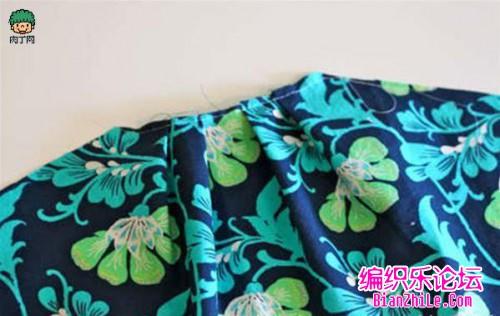 5、沿距離上面布邊1/4英寸處,疏縫一遍,固定好褶皺。縫合一道。