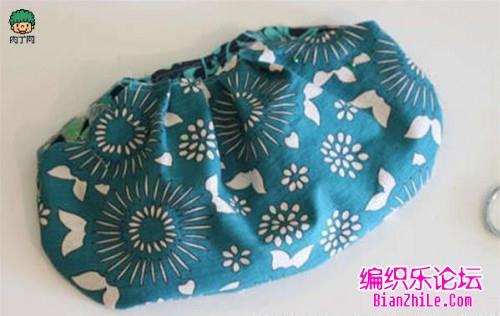 將包邊條翻過來,包也翻到正面,將包邊條和表布對齊,定位。