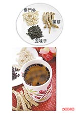 材料:黨蔘10克、麥門冬10克、五味子2克