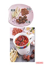 材料:紅棗5顆、枸杞10克、黃耆5片