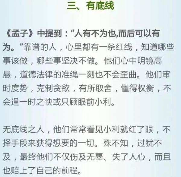 他們一就是一,二就是二,不怕露短,不怕錯誤,在進取路上勇敢做自己。 好吹噓之人,初接觸時,容易讓人產生他呼風喚雨,無所不能的錯覺。 但幾輪交往下來,尤其是遇到實實在在的問題時,他的行為或者做事的效果開始嚴重與他之前誇下的海口偏離。 這類人,經不起時間的考驗。 ![]() ![]() ![]() 四、不佔小便宜 靠譜的人,他們不會計較蠅頭小利,更不會處處算計揩油。