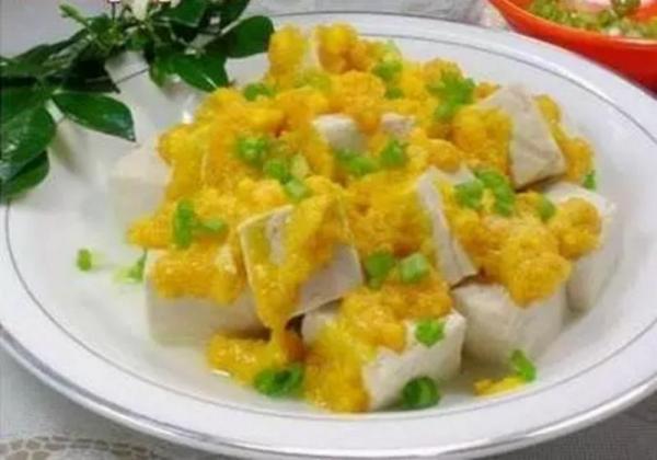 蛋黃含有很豐富的維生素D,因此鮮美滑嫩的蛋黃豆腐就是補鈣的優秀菜餚。