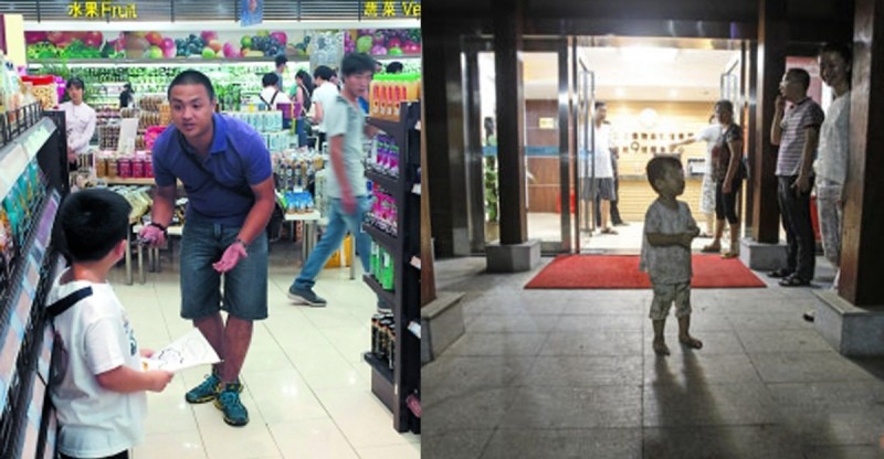 那天,全家一起去逛超市,超市位於一個大型商業廣場的三樓。在收銀的時候,孩子還蹲在離收銀台十來米遠的海鮮區域看魚缸裏的魚蝦。不知怎的,爸爸突 然心血來潮和媽媽說咱們先躲起來,看看孩子發現自己「走丟」後會是什麼反應。這樣一來,說不定還能通過這次經歷給孩子一點經驗教訓,然後再順勢進行安全教 育。