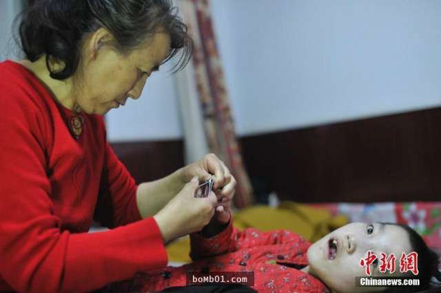 ▼由於趙麗坤每時每刻都需要家人的照料,李煥梅夫妻倆不能同時離開家,如果一個人出去打工,另一個必須留在家照顧麗坤。