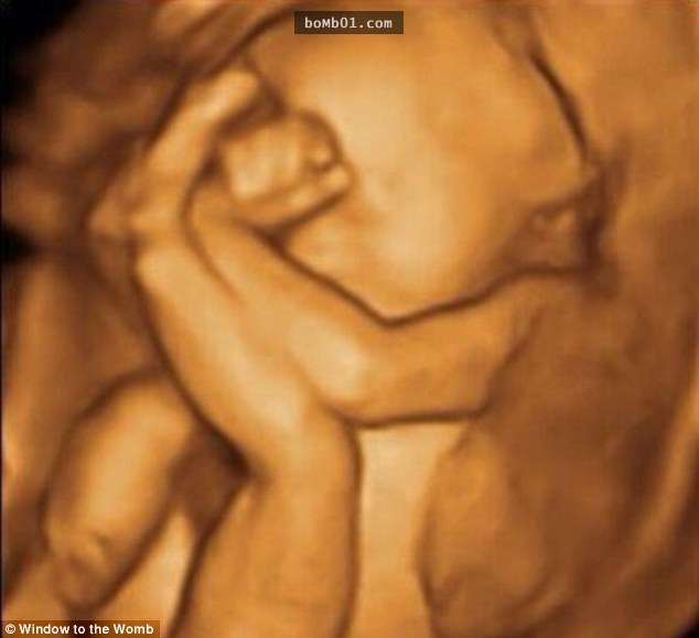 ▼這個寶寶則在打自己的臉,他的動作從超音波照片中看得一清二楚。