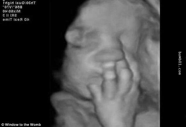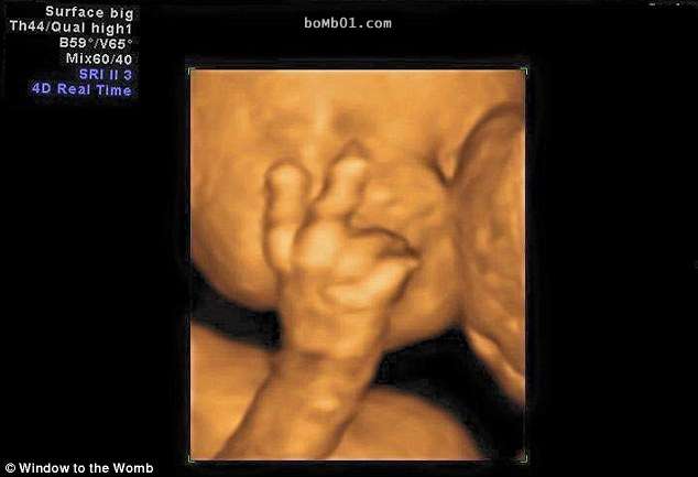 ▼懷孕7個月的準媽媽去做超音波檢查,發現寶寶伸出了兩根手指。