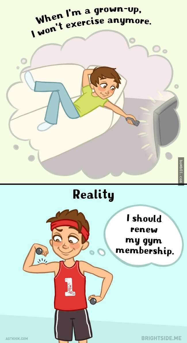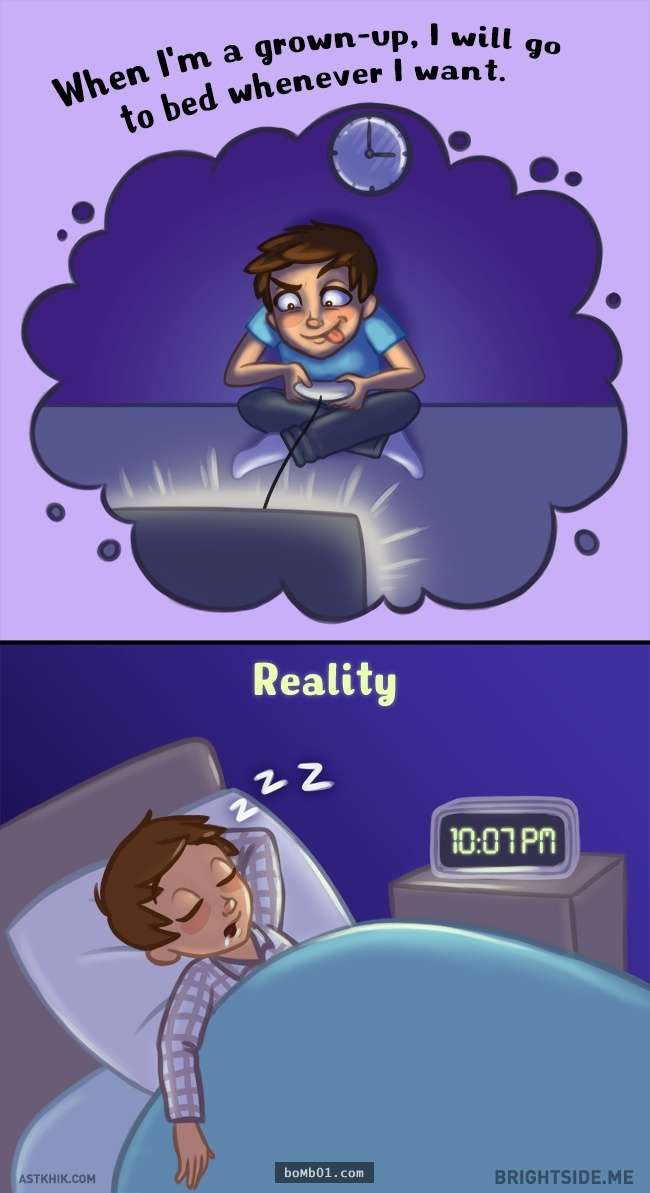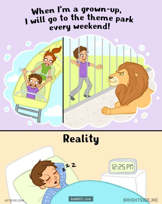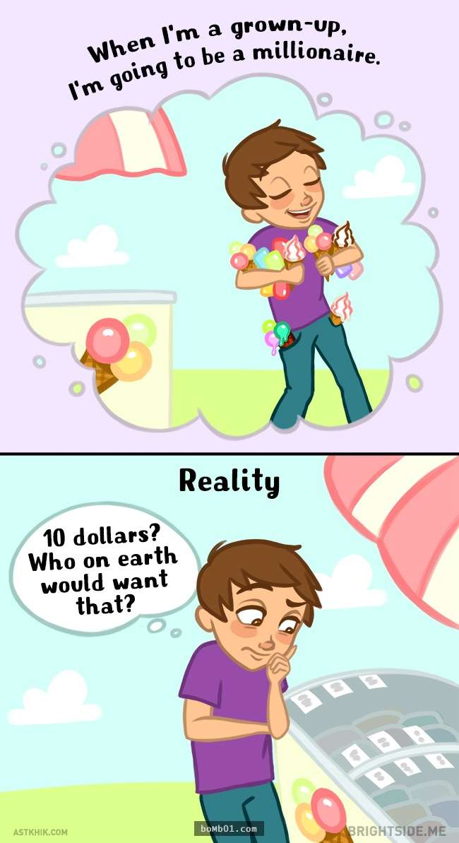 小時候我們以為長大就是無所不能,自由自在,不會有任何煩惱。但真正長大後才發現,小時候的時光最美妙。那段用來幻想未來的歲月已經一去不復返,把握現在,好好享受真正的成年人生活吧。分享出去,讓大家都看到這9張有趣的漫畫。