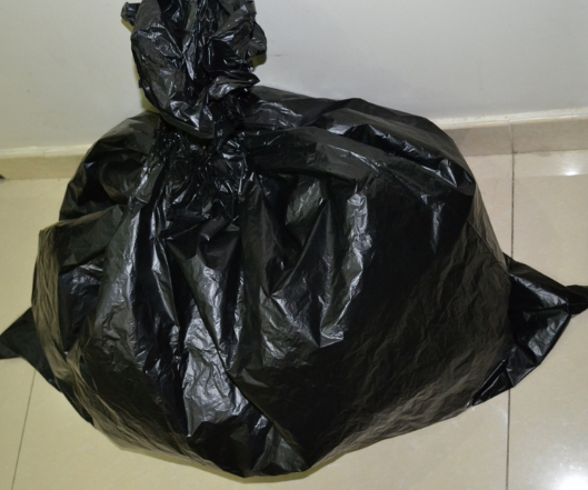 把想要曬的棉被或衣物..玩偶..毯子都行,用最大的黑色垃圾袋裝起來綁好,一定要黑色的喔。