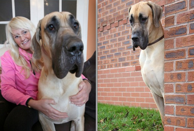 在英格蘭的西米德蘭茲郡 (West Midlands) 這隻身高六呎 (約183公分) 、重達13石 (約82公斤) 的大丹犬名叫普斯利 (Presley),而他的綽號就是史酷比!因為他就連最小最小的風吹草動都會讓他跑回去找主人討抱!