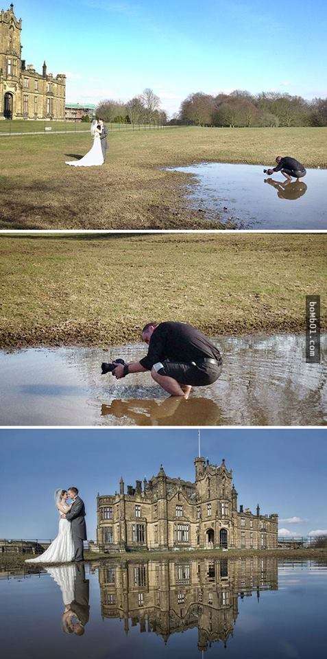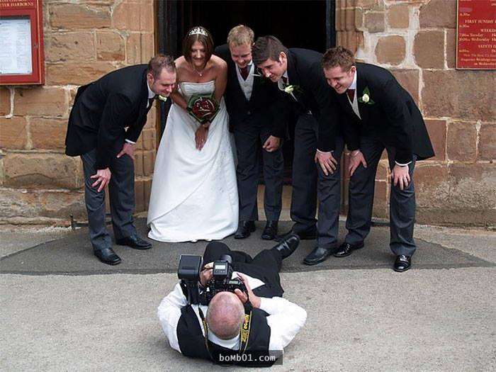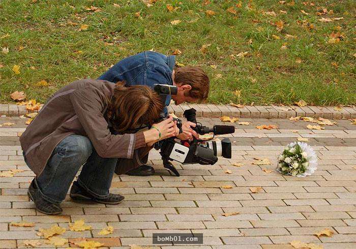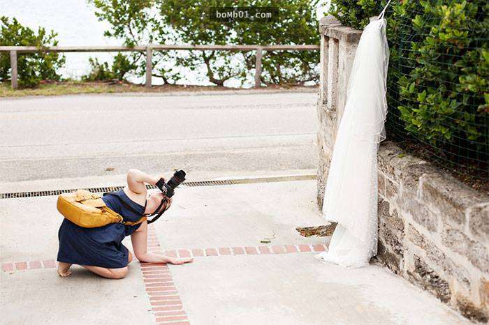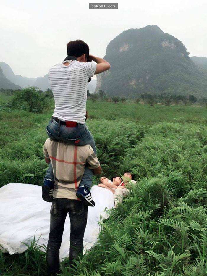 ▼美好的背影值得紀念,攝影師趴在地上為新人拍攝。
