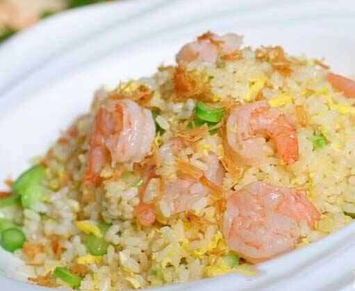 原料:剩米飯,鮮蝦,雞蛋,蔥,鹽,耗油